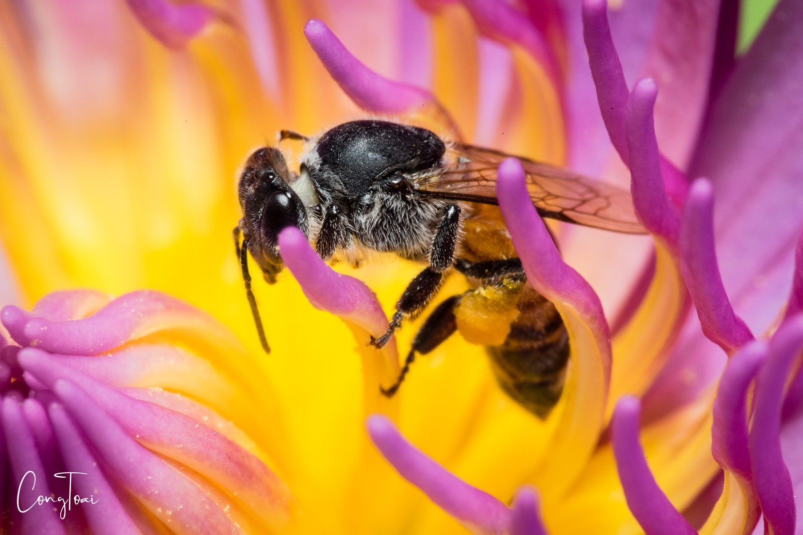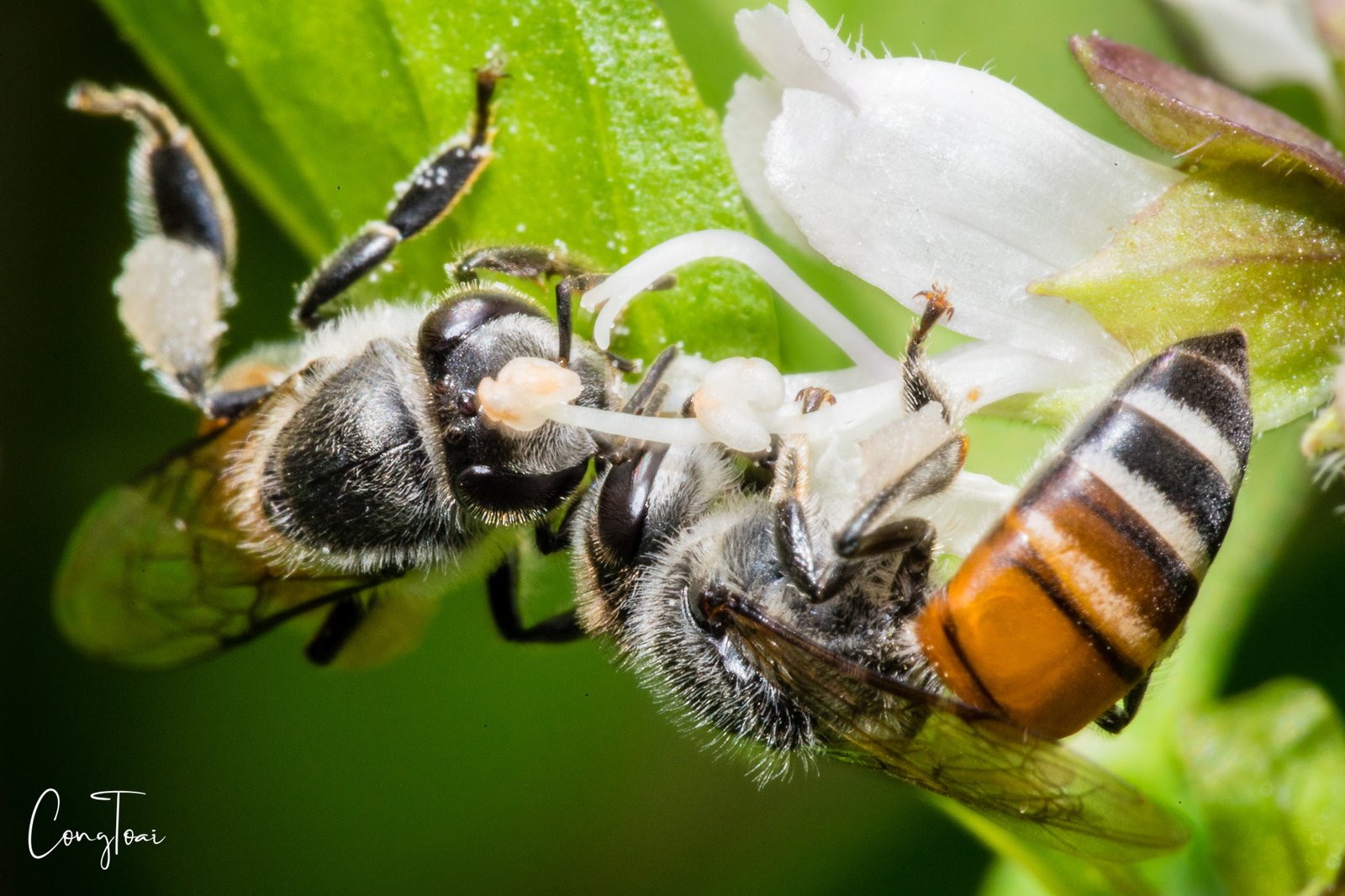 Bees are sucking honey